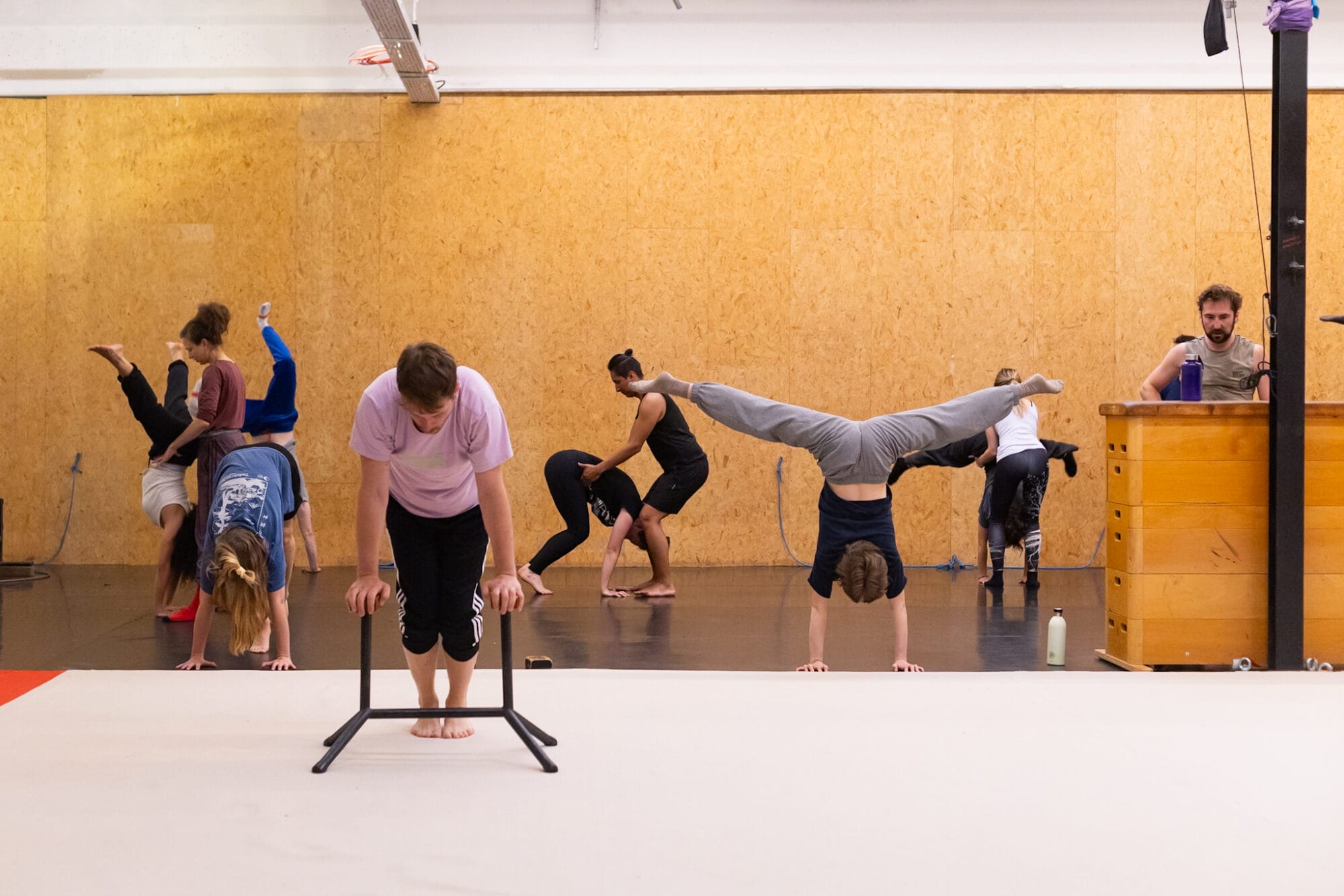 Depuis notre installation à Molenbeek, nos espaces d’entraînement sont devenus un véritable socle du projet artistique : un Open Space de 550 m² et plusieurs studios, ouverts presque chaque jour, où se croisent des centaines d’artistes de cirque — résident·es ou de passage à Bruxelles — mais aussi des amateur·ices et des professionnel·les en recherche.